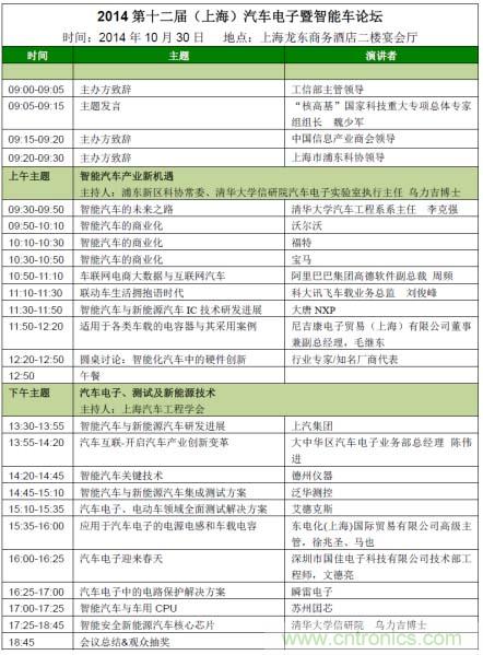 【導讀】我愛方案網 (www.52solution.com)、電子元件技術網 (m.0-fzl.cn) 攜手中國電子展、清華大學、上海市浦東新區科學技術協會、上海市汽車工程學會順應時勢,將在2014年10月30日共同主辦第十二屆(上海)汽車電子暨智能車論壇。