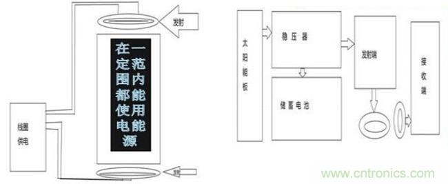 未來設想:在樓的頂部與底部各埋一發射線圈,運用太陽能為整棟樓實施無線供電。