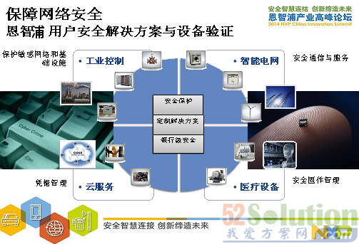 從以上圖中可以看到NXP保障網絡安全的方案,從工業控製,智能電網,醫療設備和雲服務方麵。另外,NXP也提供以終端對終端的安全連接方案在互聯汽車、物聯網和便攜的可穿戴式應用。