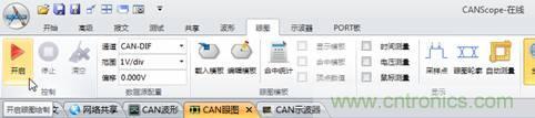 2. 打開CANScope,在DUT正常發送報文後,如圖 2點擊啟動,開啟設備的眼圖功能,獲取到如圖 3所示的眼圖波形。