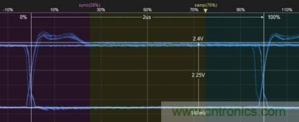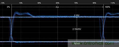 4. 然後再測量bit後半段的最大幅值,如圖5所示,為2.25V。則2.25÷2.15=104%,符合GMW3122信號特征標準。