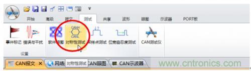 5. 為了精準測試CANH+CANL的電壓值,需要使用對稱性測試功能,如圖6所示,在“測試”中點擊啟動“對稱性測試”。