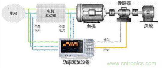 因yin此ci,為wei了le保bao證zheng電dian機ji的de效xiao率lv和he電dian機ji驅qu動dong器qi效xiao率lv測ce試shi的de準zhun確que性xing,必bi須xu保bao證zheng兩liang者zhe是shi在zai同tong一yi個ge負fu載zai下xia時shi對dui效xiao率lv進jin行xing測ce量liang的de,也ye就jiu是shi說shuo,要yao保bao證zheng在zai同tong一yi個ge時shi間jian點dian下xia進jin行xing采cai集ji。這zhe裏li一yi般ban會hui用yong到dao多duo通tong道dao的de功gong率lv分fen析xi儀yi進jin行xing測ce量liang,如ru下xia圖tu,就jiu是shi一yi種zhong非fei常chang常chang用yong的de對dui變bian頻pin電dian機ji及ji變bian頻pin器qi進jin行xing同tong步bu測ce試shi的de方fang法fa。