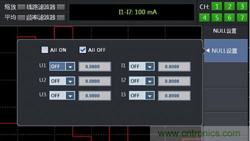 當NULL功能設置為ON時,NULL值設為之前測得的Udc和Idc(電壓/電流簡單平均的數值數據)、Speed和Torque(安裝電機卡功能,傳感器的輸入信號為模擬信號時)。如果之前測得的Udc和Idc、Speed和Torque不存在,例如打開電源和NULL功能而沒有執行測量,Udc和Idc將設為“0”。NULL功能的設置如圖2所示。
