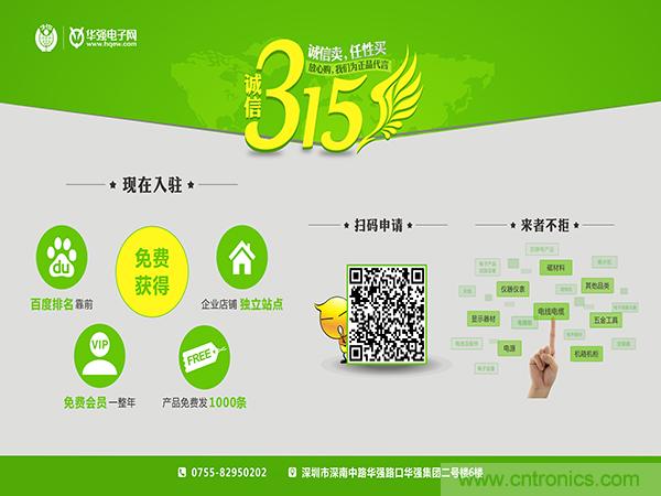 2016年兩會政府工作報告中強調大型製造業對物聯網越來越重視,相關的電子元器件、連接器的技術和產品需求將持續增長。華強電子網是全國電子元器件領域排名第一的垂直B2B網站。依賴政策紅利,響應號召,積極行動。在315國際消費者權益日全麵推出免費贈送一年會員的福利。為深耕於電子產業前線的電子人送上實實在在的315大禮!