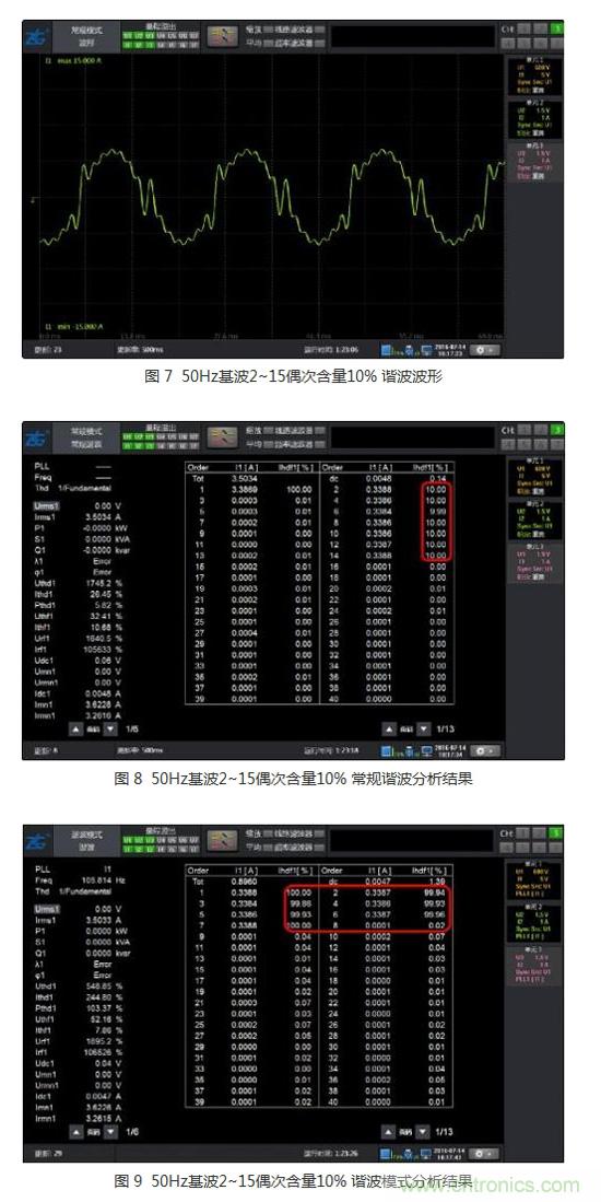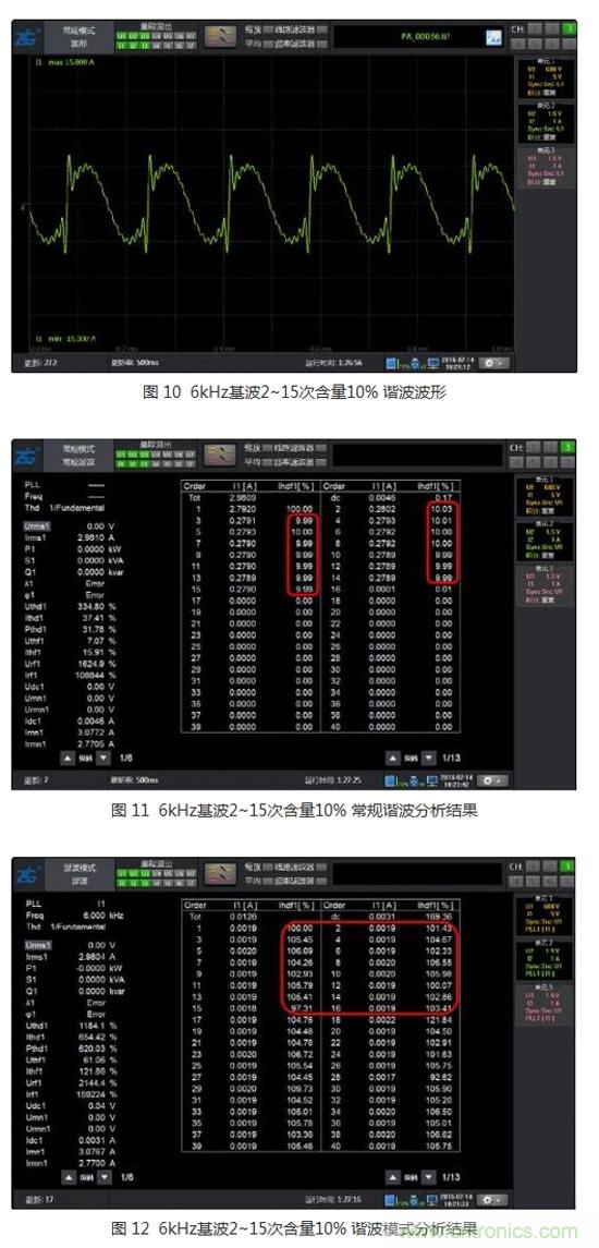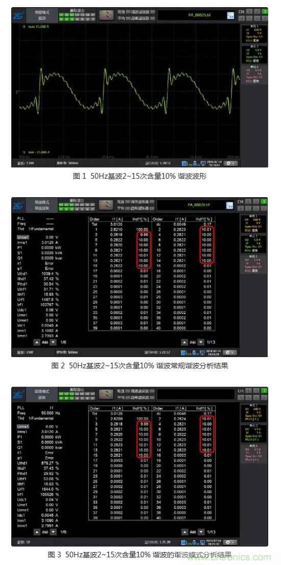 需要指出的是,雖然以上用例中常規諧波分析結果都正確且精度很高,但在諧波模式PLLzhengqueshi,xiebomoshizaigaocixiebodewendingxinghejingduhuibichangguixiebogao,yinweichangguixiebozaigaocixiebodepinlvshangyouleijiwucha,qiepinpuliangduanhuishoufupinlvdeyingxiang。tebiexuyaozhuyichangguixieboyigezhimingquedianshipinlvxiaxianjiaogao(PA5000功率分析儀的常規諧波支持基波的頻率下限是15Hz),而且需要保證更新周期內有足夠的采用點。