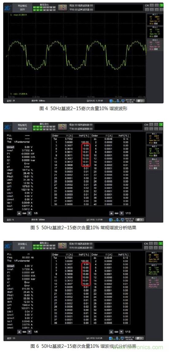 如圖 1所示包含諧波的50Hz信號波形,常規諧波和諧波模式諧波均能得到正確的諧波含量,並且精度很高。