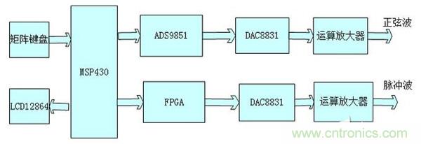 方案四:在單片機MSP430的控製下,通過軟件編程直接在FPGA內部產生可控占空比脈衝波,實現比較容易,產生信號源十分穩定。