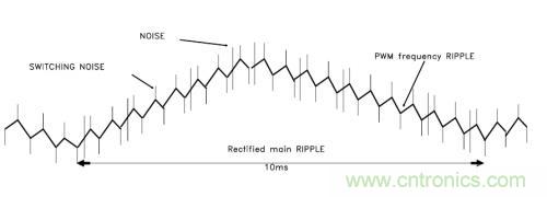 --工頻噪聲(Recfified main RIPPLE),一般是交流供電頻率的兩倍。我國供電頻率是50Hz,所以它的紋波主要來自工頻50Hz變壓器。大小取決於整流電路的類型。對於半波整流,50Hz;對於全波整流,是100Hz;對於三相全波整流,300Hz。