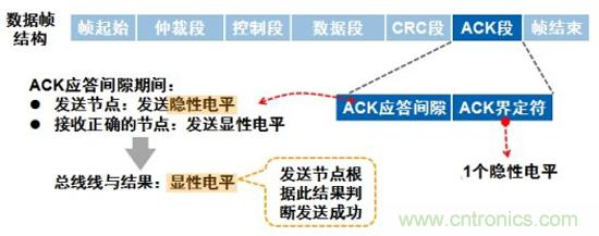 當一個接收節點接收的幀起始到CRC段之間的內容沒發生錯誤時,它將在ACK段發送一個顯性電平。 如圖3所示: