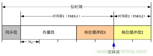 同步段位於一個位的起始位置,CAN-busguidingtiaobianyanweitongbuxinhao,danshifasongjiedianfasongyigeweigenjieshoujiedianjieshoudaozhegeweizhijiancunzaiwangluochuanboyanchi,chuanboduanzeshiweilebuchangzheduanchuanboyanchi,youyucaiyangdianweizhizaixiangweihuanchongduan1跟相位緩衝段2之間,通過設置相位緩衝段1和相位緩衝段2的值,可以調整采樣點位置,保證每個位采樣點一致。緩衝段的長度調節範圍則是由同步跳轉寬度(SJW)決定。
