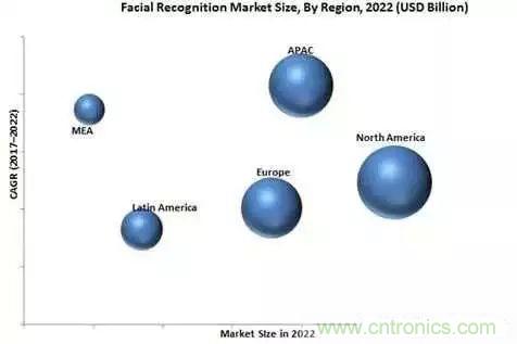 據Yole數據顯示,全球人臉識別市場規模預計將從2017年的40.5億美元增長至2022年的77.6億美元,這期間的複合年增長率可達13.9%。推動市場增長的主要因素包括:iPhone X帶動更多智能手機集成3D人臉識別,公共場所日益增長的監控需求,以及政府部門等各個產業對人臉識別技術的應用增長。