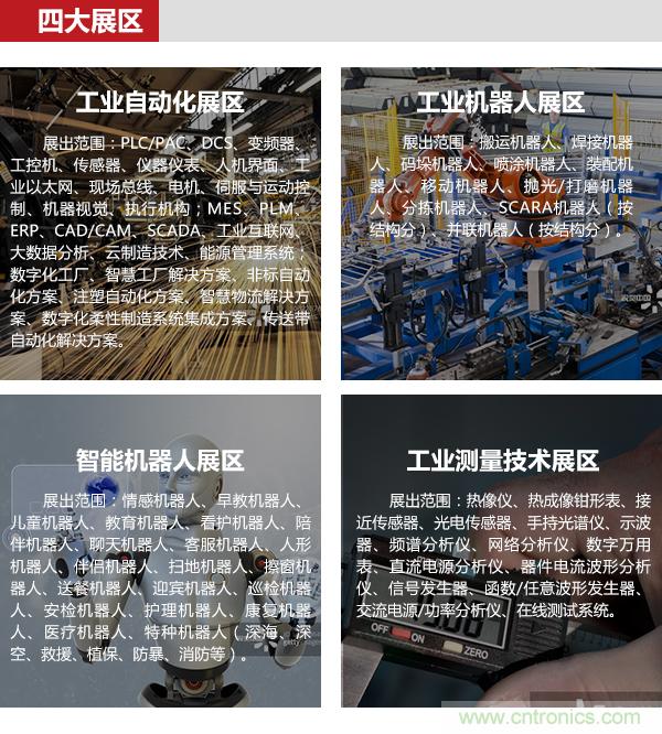 本次在線展將設工業自動化、工業機器人、智能機器人、工業測量技術四大展區,將彙集各細分領域先進產品與前沿技術。
