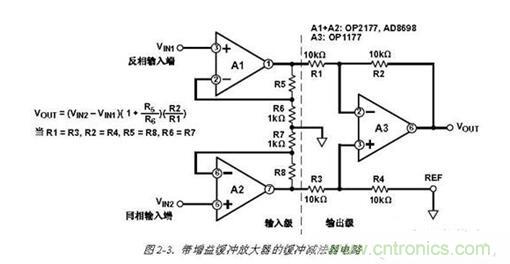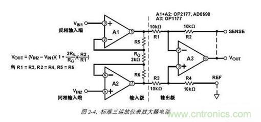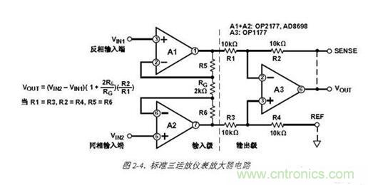 到這裏,我們導出了這個經典電路的;來龍去脈: 差分放大器--》前置電壓跟隨器--》電壓跟隨器變為同相放大器--》三運放組成的儀用放大器。