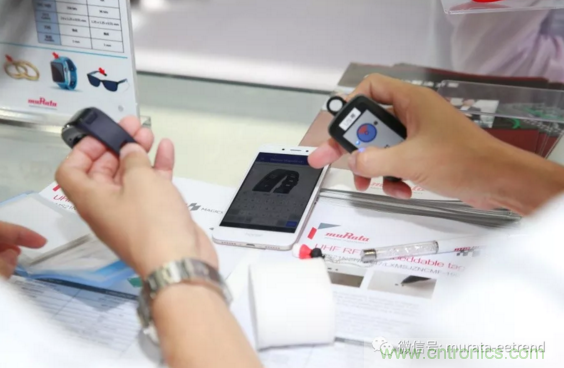 小型化一直是村田產品的獨特優勢,此次展出中,嵌入在珠寶、配飾和可穿戴產品中的RFID標簽,是目前村田的最小尺寸(1.25 x 1.25 x 0.55 mm)。