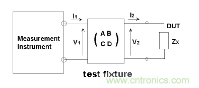 射頻電感電感量測量的原理圖如上,對於測試夾具的殘留因素和離散因素對測量係統的影響,行業的通用做法是用下麵所示的F參數來描述: