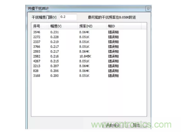 圖3錯誤幀是在幀結束位置出現電平台階。此錯誤由主動錯誤標誌+錯誤標誌疊加而成,二次抬高的是 6 個ge連lian續xu顯xian性xing電dian平ping,因yin某mou節jie點dian錯cuo誤wu後hou全quan局ju通tong知zhi,各ge節jie點dian錯cuo誤wu標biao誌zhi疊die加jia造zao成cheng的de。通tong常chang,當dang節jie點dian受shou較jiao強qiang的de電dian磁ci場chang幹gan擾rao後hou易yi發fa生sheng此ci類lei錯cuo誤wu,如ru變bian頻pin器qi、逆變器、電機等功率器件。此時,我們亦可配合FFT分析工具分析幹擾頻點,以此定位到幹擾源並屏蔽它,如圖4。