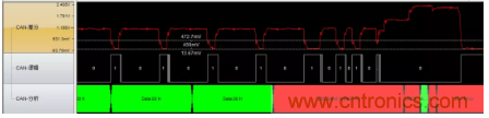 圖6波特率異常(位寬度從2us突然變成1.6us),導致位錯誤引起錯誤幀。位寬的不穩定是波特率不穩定導致的,最有可能的原因是晶振問題,建議更換晶振測試。
