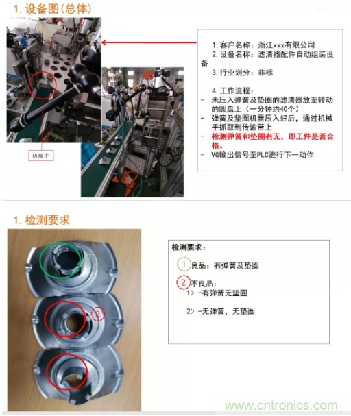 【導讀】以下是一組工業視覺圖,一起看看濾清器自動組裝設備是如何在生產中不良品的自動檢測的。