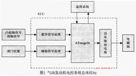 氣動發動機電控係統具有多控製參數、控製算法複雜及實時控製等特點。ECU作(zuo)為(wei)整(zheng)個(ge)電(dian)控(kong)係(xi)統(tong)的(de)核(he)心(xin),它(ta)不(bu)但(dan)要(yao)對(dui)發(fa)動(dong)機(ji)各(ge)數(shu)據(ju)信(xin)號(hao)采(cai)集(ji)和(he)實(shi)時(shi)控(kong)製(zhi),還(hai)要(yao)處(chu)理(li)各(ge)信(xin)號(hao)之(zhi)間(jian)的(de)關(guan)係(xi)以(yi)及(ji)噴(pen)氣(qi)定(ding)時(shi)和(he)噴(pen)氣(qi)量(liang)的(de)計(ji)算(suan)。另(ling)外(wai),氣(qi)動(dong)發(fa)動(dong)機(ji)電(dian)控(kong)係(xi)統(tong)的(de)工(gong)作(zuo)環(huan)境(jing)惡(e)劣(lie),要(yao)承(cheng)受(shou)強(qiang)烈(lie)的(de)振(zhen)動(dong)和(he)強(qiang)電(dian)磁(ci)幹(gan)擾(rao)等(deng)。本(ben)課(ke)題(ti)選(xuan)用(yong)ATMEL公司開發的ATmega16作為主芯片,它是一款低能耗、低電壓、高性能的AVR係列微處理器。它具有強大的數據處理功能、豐富的外圍接口和模塊化的功能設計,完全可以滿足氣動發動機電控係統數據采集、處理、控製和通訊的需求。
