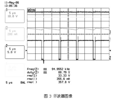 圖 2 、圖3 及表 2、表3 顯示了這種電路在90 ~265 VAC的通用輸入電壓範圍內,以350 mA驅動兩個有6個串聯LUXEON FLOOD 25-0032 HB-LED板時的結果。表 2 顯示了在輸入電壓範圍內良好的電流調節。圖 2 和圖3 shuominglezhengrulilunsuoshide,youyuzhankongbijiaoxiao,shurudianyajiaogaoshiwenbojiaocha。zhebiaomingzaizhudianyajiaodidediqu,rubeimeiheriben,shebeixingnenggengjialianghao。raner,jishizaizuichadetiaojianxia,zhiyaokongzhiqishurudianyabaochizai90 ~265 VAC的範圍內,仍可對電流進行適時調節。同時對隻使用6個HB-LED板的係統進行了測量(見表 3) ,對比結果發現,±1.3%的調節差距導致負載電壓的差距高達33.4V ~16.4V。