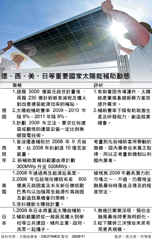 - 預估2009年後在執政者的積極輔助下,太陽能產業將有十分具潛力的發展