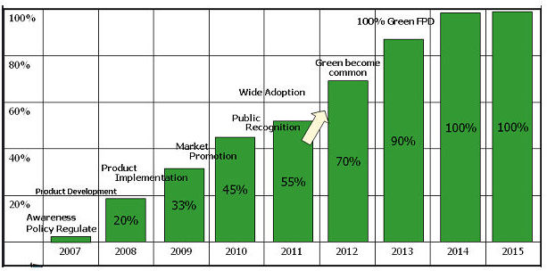 - 在2008年采用綠色環保技術或材料所生產的麵板,已有20%的市占率
