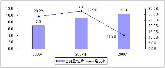 - 2008年,中國中小尺寸液晶麵板共出貨10.4億片,同比增長11.8%