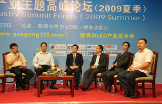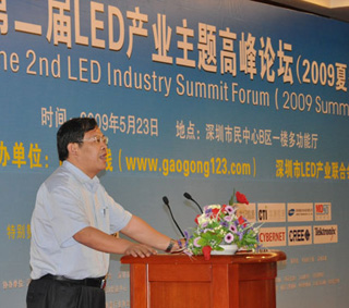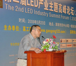 2009年5月23日,由高工在線和深圳市LED產業聯合會共同主辦的第二屆LED產業主題高峰論壇(2009夏季)在深圳市民中心B區一樓多功能廳隆重舉辦。來自香港應用科技研究院的蔡振榮博士、清華大學深圳研究生院副研究員、半導體照明實驗室副主任錢可元教授、康佳光電研究所副所長馬誌淩博士、CREE 中國區總經理唐國慶、世紀晶源研發中心主任鍾群博士、深圳雷曼光電科技限公司總經理李漫鐵、德士達光電照明科技(深圳)有限公司的總經理熊映翔、深圳市華測檢測技術股份有限公司(CTI華測檢測機構)副總裁/廣州市華德檢測技術開發有限公司(DEKRA-CTI華德)總經理聶鵬翔、深圳茂碩電源科技股份有限公司的技術總監蘇周等嘉賓就LED芯片、核心器件、顯示、道路照明、路燈標準與關鍵技術、LED驅動電源、LED產品檢測、認證和標準化等方麵發表了主題演講。