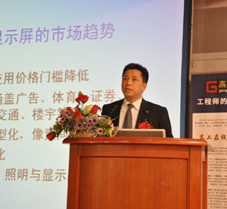 我們知道,LED顯示屏已經廣泛應用到車站、銀行、證券、醫院等領域。據了解,LED顯示屏僅次於LED指示燈名列第二,占到LED整體銷量的23%。專注於大屏幕顯示和器件生產的國內知名的LED製造商深圳雷曼光電科技有限公司的總經理李漫鐵以顯示屏核心LED器件的技術與發展趨勢為題發表主題報告。李總指出,在市場趨勢方麵,大尺寸LED顯示屏將向性價比更高、應用價格門檻降低、應用麵更廣(涵蓋廣告、體育、證券、展覽、舞台、招牌、交通、樓宇等領域)、顯示屏尺寸大型化、像素間距小型化、生產分工明細化、樓宇景觀裝飾、照明與顯示融合化等方麵發展。在技術方麵,將向高分辨率、高亮度、高灰度、寬色域、低衰減、低功耗、大視角、控製網絡化、智能化、生產自動化、模塊化、可調較、超輕、超薄化、維護簡單化、SMD屏戶外化方麵發展。