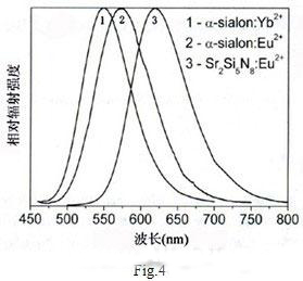 [page]2007年日本材料科學研究所納米陶瓷中心得到的結果是最高的[3],他們采用中心波長為450nm的InGaN藍光LED和光子轉換效率高、在450nm藍光範圍 有強吸收峰、溫度係數低的三種熒光粉進行了試驗,這三種熒光粉分別為:α-sialon: Yb2+、α-sialon: Eu2+和Sr2Si5 N8: Eu2+。這些熒光粉的特點是發光效率的熱衰減較小,在