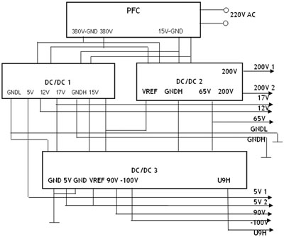 電源作為PDP的重要組成部分,要求效率高、體積小、能夠提供較大的瞬態輸出功率,並且具有保護功能和不同輸出電壓按順序啟動的功能。