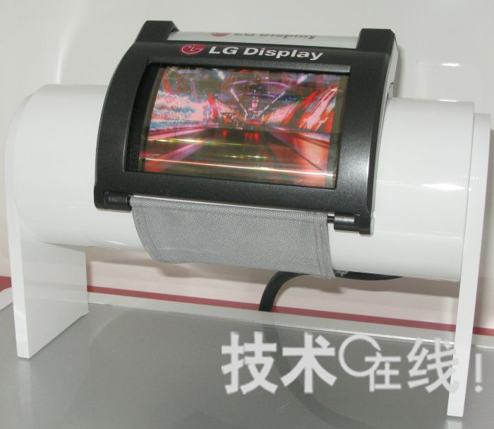 韓國LG顯示器在顯示器相關展會“FPD International 2009”(10月28~30日,太平洋橫濱會展中心)上,展出了可彎曲戴在手腕上的柔性有機EL顯示器。此為該公司在學會“SID 2009”上,於美國環宇顯示技術(UDC)展位公開過的柔性有機EL顯示器更新版。