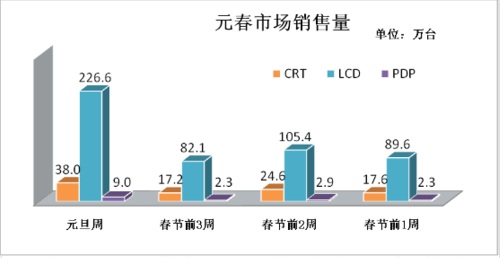 2010年的元旦與農曆春節分別在1、2月份,銷售周期被拉長(這與2006、2007年相似)。基於此,權威市場調查機構中怡康時代認為2010年元春市場彩電需求不會在元旦期間集中釋放,將會在元旦到春節前持續6個周的時間內分階段釋放。