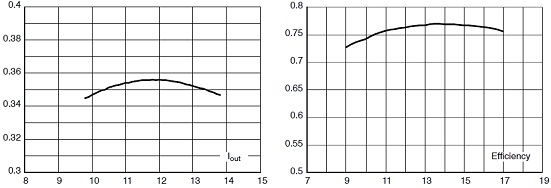 這參考設計在不同交流輸入電壓條件下的輸出電流及在不同直流電壓條件下的能效測試結果分別如圖3a及3b所示。其中,如圖3b所示,這參考設計在11至17 Vdc範圍下能效高於0.75,這個能效數據在這類低功率應用中表現亮眼。