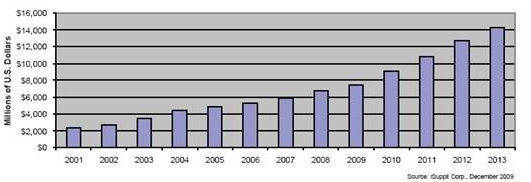 到2013年,全球LED市場將達到143億美元,比2009年增長近一倍。