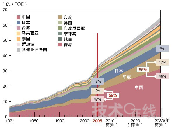 圖1:持續增長的能源需求亞洲各國的能源需求變化。印度的增加率較高