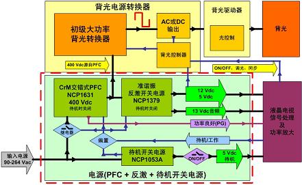 圖2:安森美半導體32英寸高壓LIPS液晶電視電源GreenPoint®參考設計功能框圖