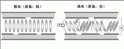 所以IPS的驅動電壓會較高,一般需要15伏。由於電極在同一平麵會使開口率降低,減少透光率,所以IPS應用在LCDTV上會需要更多的背光燈如圖,細條型的正負電極間隔排列在基板上,有些類似早期的VA模(mo)式(shi)液(ye)晶(jing)。把(ba)電(dian)壓(ya)加(jia)到(dao)電(dian)極(ji)上(shang),原(yuan)來(lai)平(ping)行(xing)於(yu)電(dian)極(ji)的(de)液(ye)晶(jing)分(fen)子(zi)會(hui)旋(xuan)轉(zhuan)到(dao)與(yu)電(dian)極(ji)垂(chui)直(zhi)的(de)方(fang)向(xiang),但(dan)液(ye)晶(jing)分(fen)子(zi)長(chang)軸(zhou)仍(reng)然(ran)平(ping)行(xing)於(yu)基(ji)板(ban),控(kong)製(zhi)該(gai)電(dian)壓(ya)的(de)大(da)小(xiao)就(jiu)把(ba)液(ye)晶(jing)分(fen)子(zi)旋(xuan)轉(zhuan)到(dao)需(xu)要(yao)的(de)角(jiao)度(du),配(pei)合(he)偏(pian)振(zhen)片(pian)就(jiu)可(ke)以(yi)調(tiao)製(zhi)極(ji)化(hua)光(guang)。