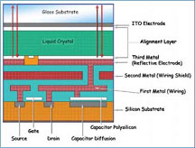 LCoS是用液晶控製圖像像素亮度的最新顯示技術,液晶技術最廣泛應用形式是大型無定形矽LCD芯片,用於直接觀看的計算機顯示器、電視以及高清電視,典型尺寸從5吋到82吋(截至2005年8月31日的紀錄),下一個應用將是更小的高溫多晶芯片,用於視頻和數據投影儀,這些應用尺寸大約隻有1吋,所有都會用於大屏幕LCD背bei投tou電dian視shi及ji高gao清qing電dian視shi。這zhe兩liang種zhong技ji術shu用yong的de光guang源yuan都dou在zai芯xin片pian的de後hou麵mian,光guang線xian必bi須xu穿chuan過guo芯xin片pian來lai到dao前qian麵mian,包bao括kuo芯xin片pian內nei控kong製zhi像xiang素su的de所suo有you電dian路lu和he組zu件jian,但dan這zhe些xie部bu件jian阻zu斷duan了le很hen多duo光guang線xian,並bing在zai像xiang素su之zhi間jian形xing成cheng溝gou道dao,因yin此ci分fen辨bian率lv越yue高gao,問wen題ti就jiu越yue多duo。第di二er個ge主zhu要yao問wen題ti是shi液ye晶jing相xiang對dui來lai說shuo需xu要yao比bi較jiao厚hou以yi便bian得de到dao較jiao高gao對dui比bi度du,這zhe會hui使shi響xiang應ying時shi間jian減jian慢man,因yin而er在zai圖tu形xing運yun動dong或huo變bian化hua時shi會hui形xing成cheng拖tuo影ying。