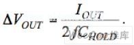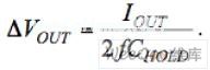 在第二階段,C1+連接到輸出,放電電流(電流大小與前麵的充電電流相同)通過C1流到負載。在這個階段,輸出電容電流的變化大約為2IOUT。盡管這個電流變化應該能產生一個輸出電壓變化為2IOUTESRC_HOLD,使用低ESR的陶瓷電容使得這種變化可以忽略不計。此時,CHOLD按下麵的電量線性電位充電︰