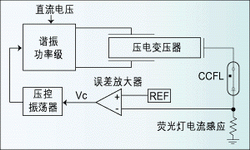 圖4給出了一個基於PZT的背景光轉換器的簡化功能圖。PZTyouyigefuduzhengbiyushurudianyadexiezhengonglvjiqudong,tatigongqudongyingguangdengsuoxuyaodedianyazengyi。weiraozhewuchafangdaqixingchengleyigekongzhihuan,wuchafangdaqibapingjunyingguangdengdianliutongcankaoxinhao(REF)相比較,以便於對熒光燈的光強度進行調節。控製電壓Vc驅動用來確定諧振功率級的運行頻率的壓控振蕩器(VCO)。