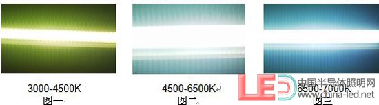 LED不同的色溫會產生不同的視覺效果。3000K-4500K(圖一)會產生一種給人溫暖的感覺,但是此種色溫的相對照度較低,4500K-6500K(圖二)是我們所說的正白光,看起來為白色。6500-8000K(圖三)是冷白光,看上去會給人一種冰冷的感覺,此種色溫相對照度較高。可以根據不同的使用場合選用不同的色溫來達到不同的效果。(如上圖所示)