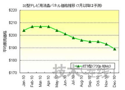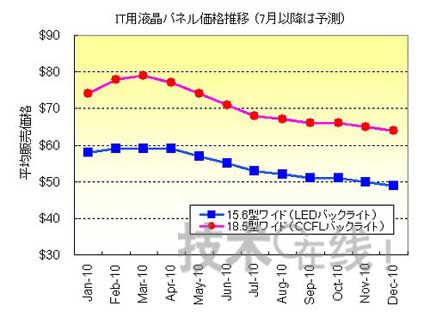 各大主要電視機廠商預計中國等新興市場國家的需求將出現擴大,從2009年底開始積極購買麵板。其中,需求偏向於LED背照燈麵板,CCFL背照燈麵板則以低水平推移。因此,由於背照燈的不同而產生的麵板價格差處於逐漸擴大的趨勢。