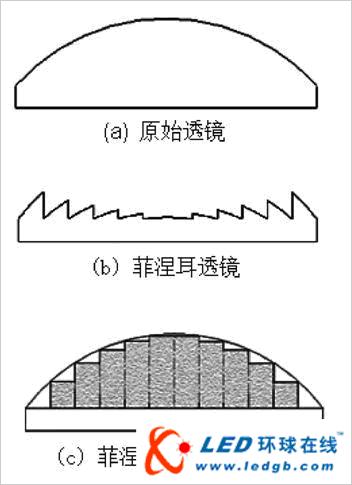 dangetoujingyibanshiyigebiaomianxingzhuangweiqumiandetoumingcailiao,qizuoyongshigaibianguangxiandefangxiang,xingchengsuoxudeguangqiangkongjianfenbu。qiquedianshiwangwangbijiaohou,yincitijidachengbengao,erqiexishouyejiuda,tebieshiqulvdadetoujinggengshiruci。weijiandanji,juyigepingtutoujingdelizi,yuanshidepingaotoujingjiantu1(a),相應地傳統的菲涅爾透鏡見圖1(b),為了說明原理,圖中齒距畫得比較大。