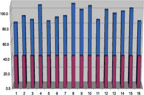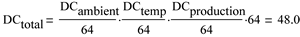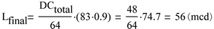 從上可見,運用48的組合點校正值即可得到56mcd的期望亮度。請注意,由於溫度引起亮度下降,故本計算中的起始電流被設置為起始生產電流的90%。