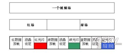 想要直接用RGB的LED來取代濾色片看上去好像很簡單,其實是不可能的。因為濾色片是把每一個像素都分成三種不同顏色的子像素,如果直接用三種顏色的LED來取代濾色片,就必須采用小到和子像素尺寸一樣大的LED來照射每一個子像素,才不會使紅光照到綠光的子像素上。這樣,LED的個數就要幾百萬個之多。為維持像素數不變,唯一的方法是重複使用這些像素,也就是采用時分複用製。這樣隻要順序地發射出紅光、綠光、藍光,同時控製每個像素的薄膜晶體管(TFT),使其相應地按照該像素在這種顏色時所應當具有的的強度來開啟液晶光閥。但是,要順序地發出紅、綠、lansanzhongyanse,bingnengxingchengyigecaisedeshipintuxiang,jiubixuliyongrenyandeshijiaocanliuzuoyong。zhiyaozhesanzhongyanseshunxuzhongfudezhouqixiaoyurenyandeshijiaocanliushijian,jiukeyizairenmendedanaozhongxingchengyigecaisedetuxiang。shijiaocanliushijianshijishangjiushidianshidechangpinzhouqi,zaiPAL製中為五十分之一秒。這也就要求在五十分之一秒的時間內必須完成紅、綠、藍三個圖象的顯示。因此,這種方式被稱為“場順序”體製,也有人稱之為“色順序”體製。