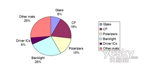 其中背光源的25%成本是基於CCFL的數據,如果采用LED作為背光源,它所占的成本將大大超過這個比例,大約要占到50%的成本。采用場順序製以後,拿掉了濾色片就相當於發光效率提高了70%,這是非常可觀的。這意味著LED的數量可以減少70%,LED的成本就可以減少70%。而且LED數量減少70%以後,其發熱量可以減少70%,耗電也可以減少70%。
