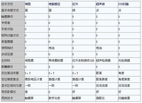 綜(zong)上(shang)所(suo)述(shu),交(jiao)互(hu)式(shi)電(dian)子(zi)白(bai)板(ban)采(cai)用(yong)不(bu)同(tong)的(de)定(ding)位(wei)方(fang)式(shi),則(ze)會(hui)有(you)不(bu)同(tong)的(de)特(te)點(dian)和(he)性(xing)能(neng)。下(xia)表(biao)將(jiang)上(shang)麵(mian)的(de)文(wen)字(zi)內(nei)容(rong)進(jin)行(xing)總(zong)結(jie)和(he)對(dui)比(bi),相(xiang)信(xin)讀(du)者(zhe)能(neng)分(fen)清(qing)各(ge)種(zhong)技(ji)術(shu)的(de)差(cha)異(yi),選(xuan)擇(ze)適(shi)合(he)自(zi)己(ji)的(de)一(yi)款(kuan)產(chan)品(pin)。