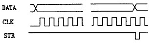 如以單色點陣、16 行×64 列為一個基本單元,則需用8 片74HC595、64個8050及16個行掃描管, 其工作原理為:將八片74HC595 級連,共用一個串行時鍾CLK及數據鎖存信號STR。當第一行需要顯示的數據經過8×8= 64 個CLK時鍾後將全部移入74HC595 中,此時產生一個數據鎖存信號STR,使數據鎖存在74HC595的後級鎖存器中,則與其各輸出位對應的8050 將處於飽和導通或截止; 同時由行掃描控製電路產生信號使第一行掃描管導通,相當於第一行LED的正端都接高平,顯然第一行LED管子的亮滅就取決於74HC595 中所鎖存的信號;在第一行LED管子點亮的同時,在74HC595 中移入第二行要顯示的數據,隨後將其鎖存,並同時由行掃描控製電路將第一行掃描管關閉而接通第二行,使第二行LED 管子點亮。以此類推,當第十六行掃描過後再回到第一行,隻要掃描速度足夠高,就可形成一幅完整的文字或圖像,其工作時序見圖2。